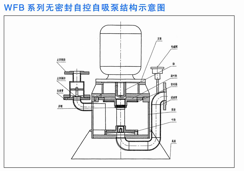 WFB系列無密封自控自吸泵,是填補國內(nèi)空白的首創(chuàng)產(chǎn)品,該產(chǎn)品具有耐溫、耐壓、耐磨、“一次引流”、“終生自吸”等多種功能。目前生產(chǎn)不銹鋼、增強聚丙烯、鑄鋼、鑄鐵等多種材質(zhì)的系列整機,五種不同造型共一千余種規(guī)格,在電力、電力、化工、冶金、醫(yī)藥、食品、電鍍、環(huán)保、消防、市政、凈水、國防軍工、紡織印染、采掘選礦、民用建筑等行業(yè)中廣泛運用,深受用戶的好評。