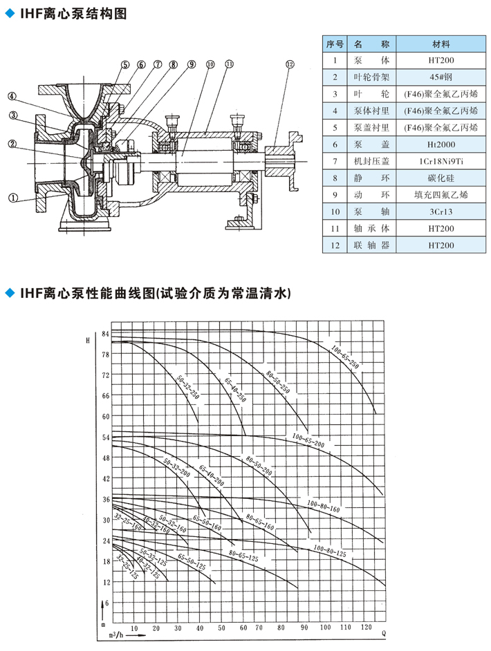 IHF襯氟塑料離心泵(F46),酸洗泵,襯氟泵,硫酸泵結(jié)構(gòu)圖