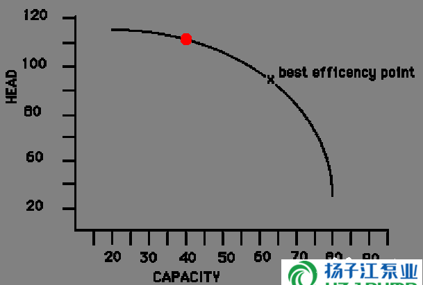 例如,這個(gè)“紅點(diǎn)”的泵有40的流量值@110壓頭值