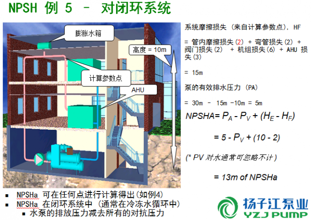 閉式系統(tǒng)總壓頭的計(jì)算方法: