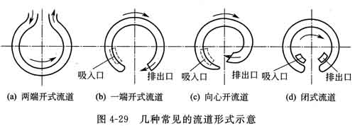按流道與葉輪的相對位置可分為圖4-33所示的外圍流道式、外圍雙側(cè)邊流道式、外圍單側(cè)邊流道式、雙側(cè)邊流道式和單側(cè)邊流道式。