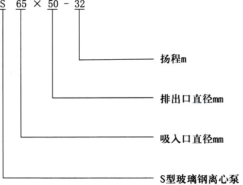 【S型玻璃鋼離心泵】型號(hào)意義: