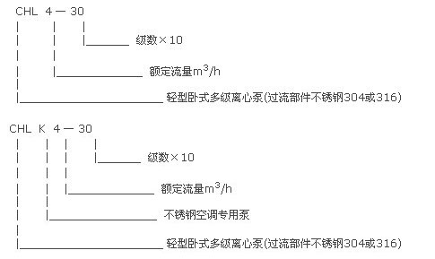 【CHL型不銹鋼輕型多級離心泵】型號意義: