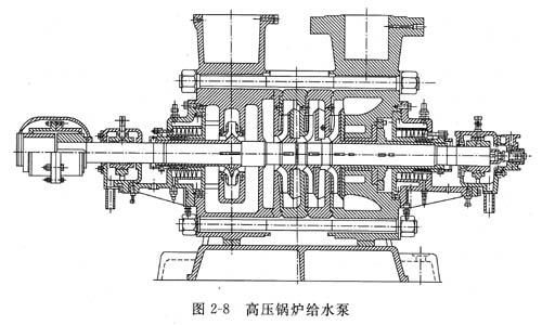 根據(jù)使用場(chǎng)合不同,分段式多級(jí)離心泵可分為一般分段式多級(jí)離心泵(見(jiàn)圖2-7),中、低壓鍋爐給水泵和高壓鍋爐給水泵(見(jiàn)圖2-8)。
