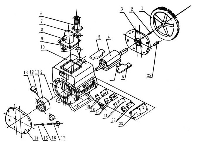 ![]() 圖(3):2X型旋片式真空泵整體結構圖 |