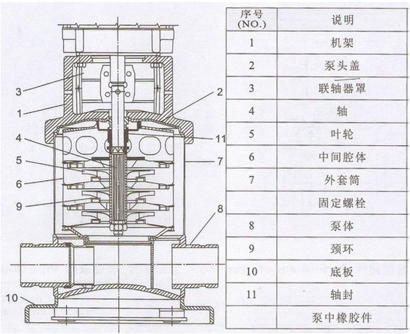 立式多級(jí)熱水管道離心式循環(huán)泵|多級(jí)鍋爐給水泵結(jié)構(gòu)圖