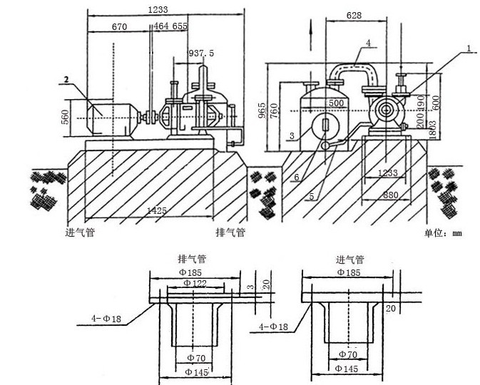 SZ型水環(huán)式真空泵的安裝尺寸圖及安裝說(shuō)明