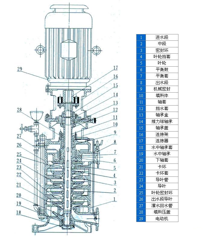 DL型立式清水多級(jí)泵結(jié)構(gòu)圖