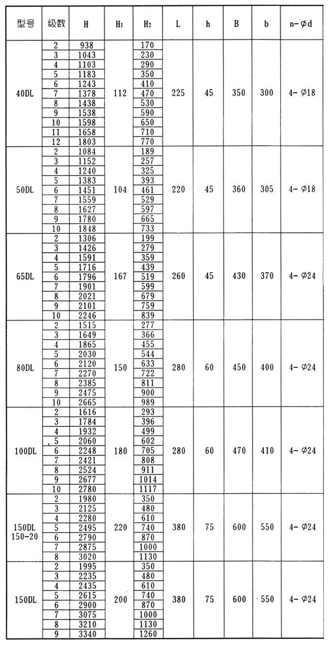 | DL型立式多級(jí)離心泵 | ||||||||||