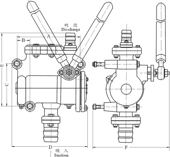 本型手搖泵適用于抽吸清水、汽油、煤油及對(duì)鐵和銅等無腐蝕性之液體,不適用于含有纖維或其它固體顆粒之液體。抽吸液體之溫度在60℃以下(系指皮碗式泵)。其性能范圍;流量為15-59升/分,大揚(yáng)程為30米。