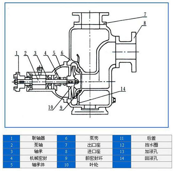 該泵均采用軸向回液的泵體結構。泵體由吸入室、儲液室、渦卷室、回液孔、氣液分離室等組成.?泵正常起動后.葉輪將吸入室所存的液體及吸入管路中的空氣一起吸入.并在葉輪內得以完全混合.?在離心力的作用下,液體夾帶著氣體向渦卷室外緣流動.在葉輪的外緣上形成有一定厚度的白色泡沫帶及高速旋轉液環(huán)。氣液混合體通過擴散管迸入氣液分離室。此吋,由于流速突然降低,較輕的氣體從混合氣液中被分離出來,氣體通過泵體吐出口繼續(xù)上升排出。脫氣后的液體回到儲液室,并由回流孔再次迸入葉輪,與葉輪內部從吸入管路中吸入的氣體再次混合.在高速旋轉的葉輪作用下,又流向葉輪外緣……。隨著這個過程周而復始地迸行下去.吸入管路中的空氣不斷減少,直到吸盡氣體.完成自吸過程.泵便投入正常作業(yè)。因為該泵具有這種獨特的排氣能力,所以此泵能輸送含有氣體的液體,無需安裝底閥.使用在油輪上時具有良好的掃艙功能。