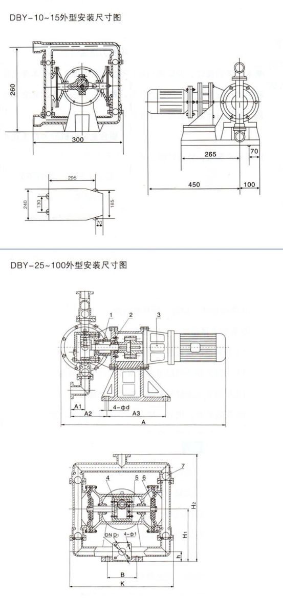 DBY擺線式不銹鋼四氟電動隔膜泵安裝尺寸圖