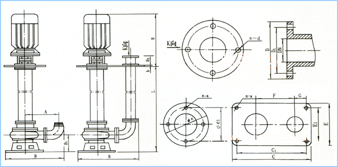 8、泵有單管安裝和雙管安裝兩種,支承件有圓盤和方盤安裝,適合不同需要。