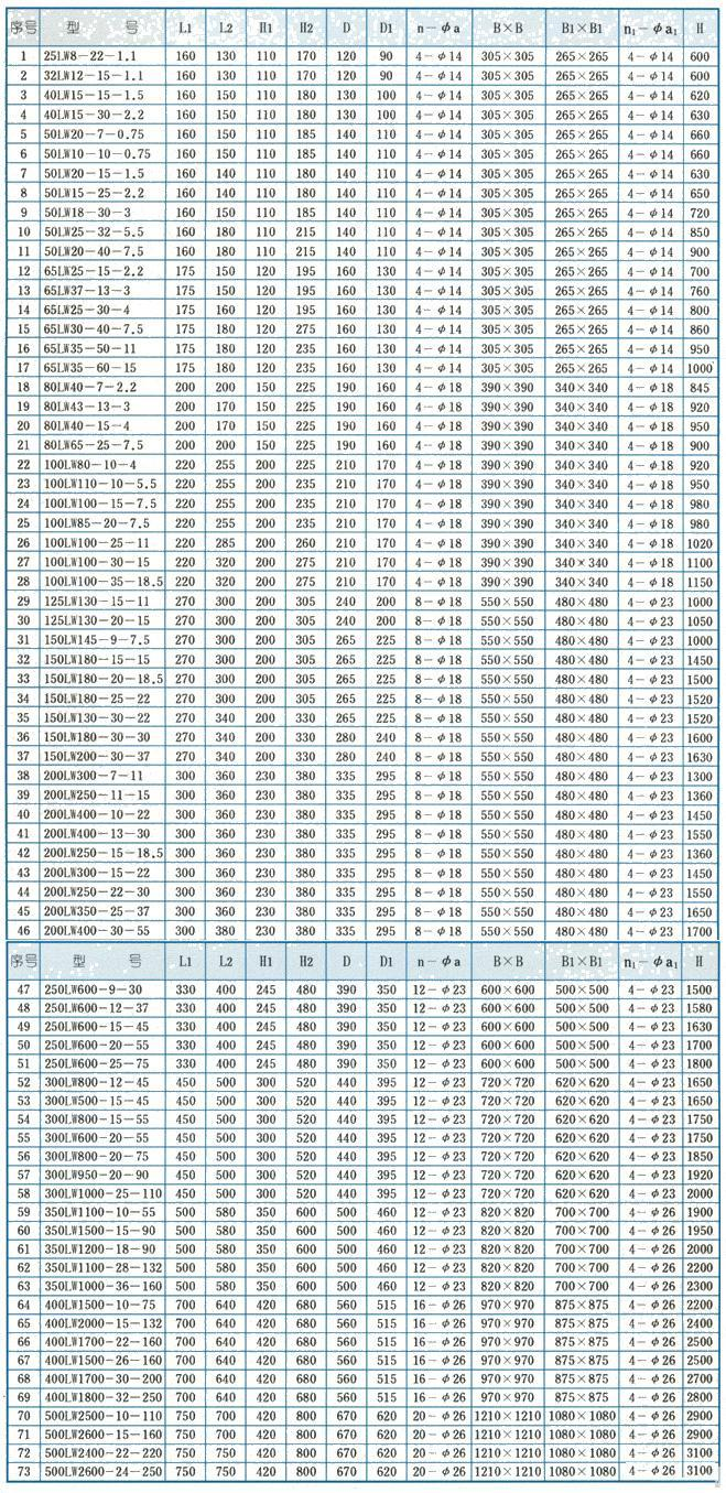【LW型立式無堵塞排污泵】型號意義: