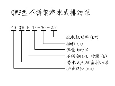 QWP型不銹鋼潛水式排污泵型號意義: